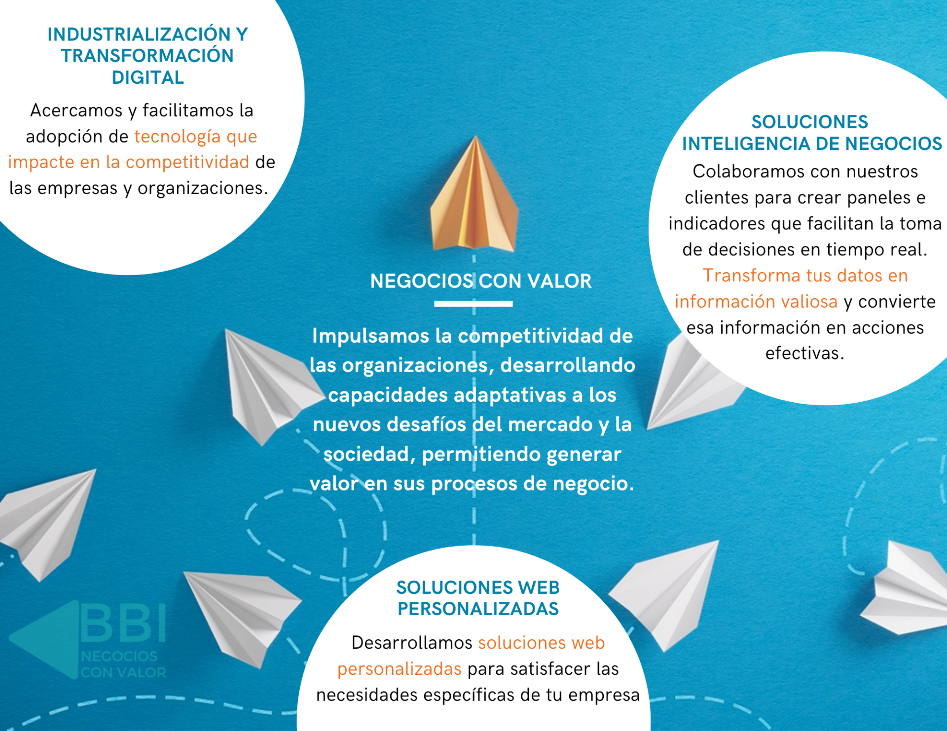 Nuestro equipo de expertos te guiará desde la evaluación hasta la implementación exitosa de soluciones digitales. Maximiza la eficiencia, mejora la experiencia del cliente y obtén una ventaja competitiva en todo el modelo de negocio. Te proporcionaremos estrategias personalizadas para aprovechar las oportunidades de la era digital. Confía en nuestra experiencia para impulsar tu transformación digital. Contáctanos hoy mismo y descubre cómo nuestra asesoría puede llevar tu organización al éxito en la economía digital.